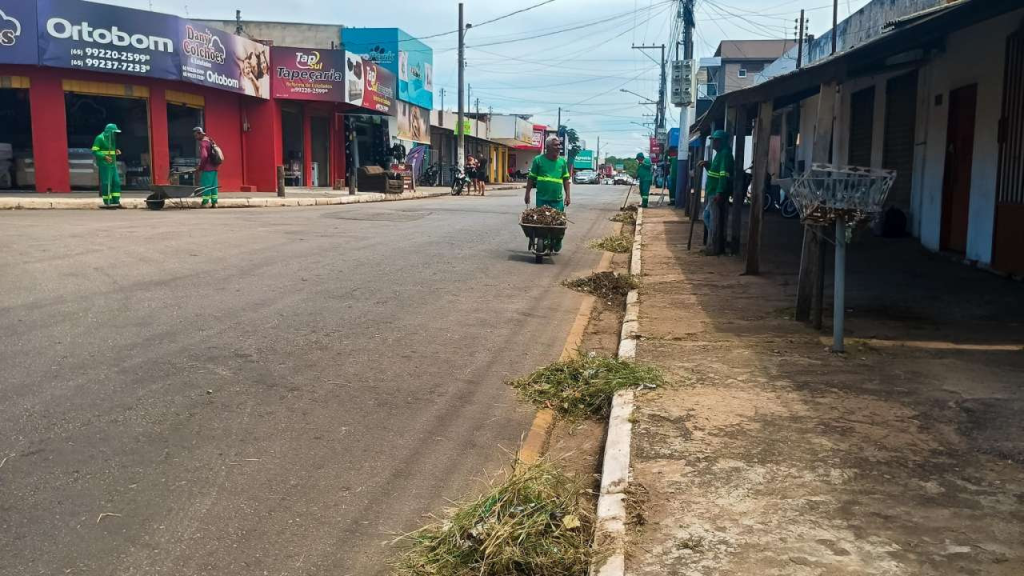 Roçagem, capinação, retirada de bolsões de lixo e pintura de meio-fio: